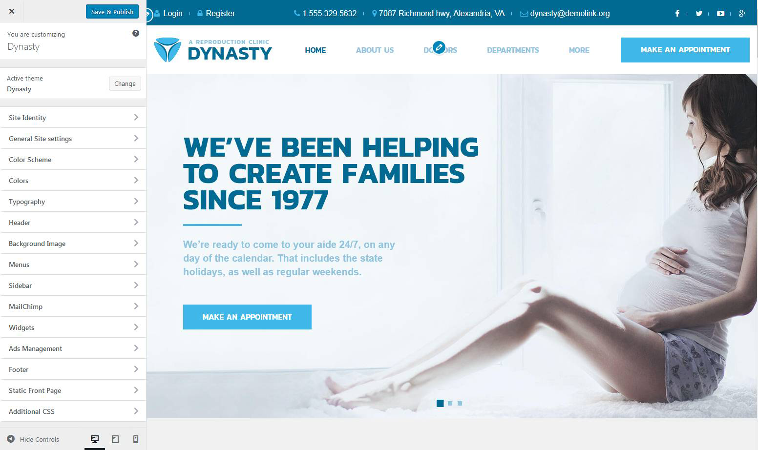 Then you can define the menu position and check the result with the help of the customizer tool.