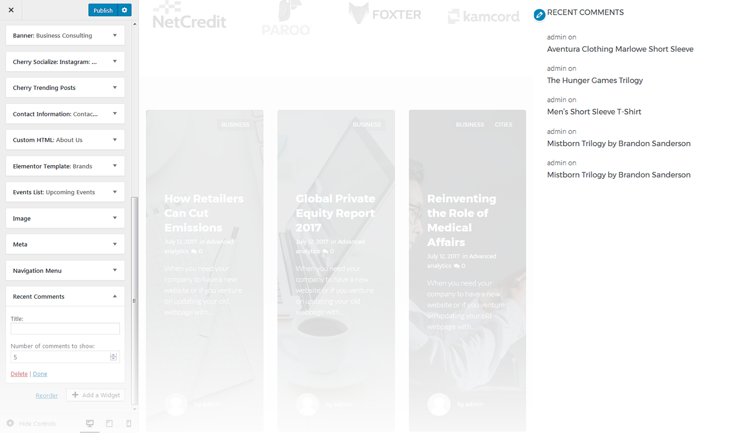 This widget is used to display the recent comments to the posts on the homepage.