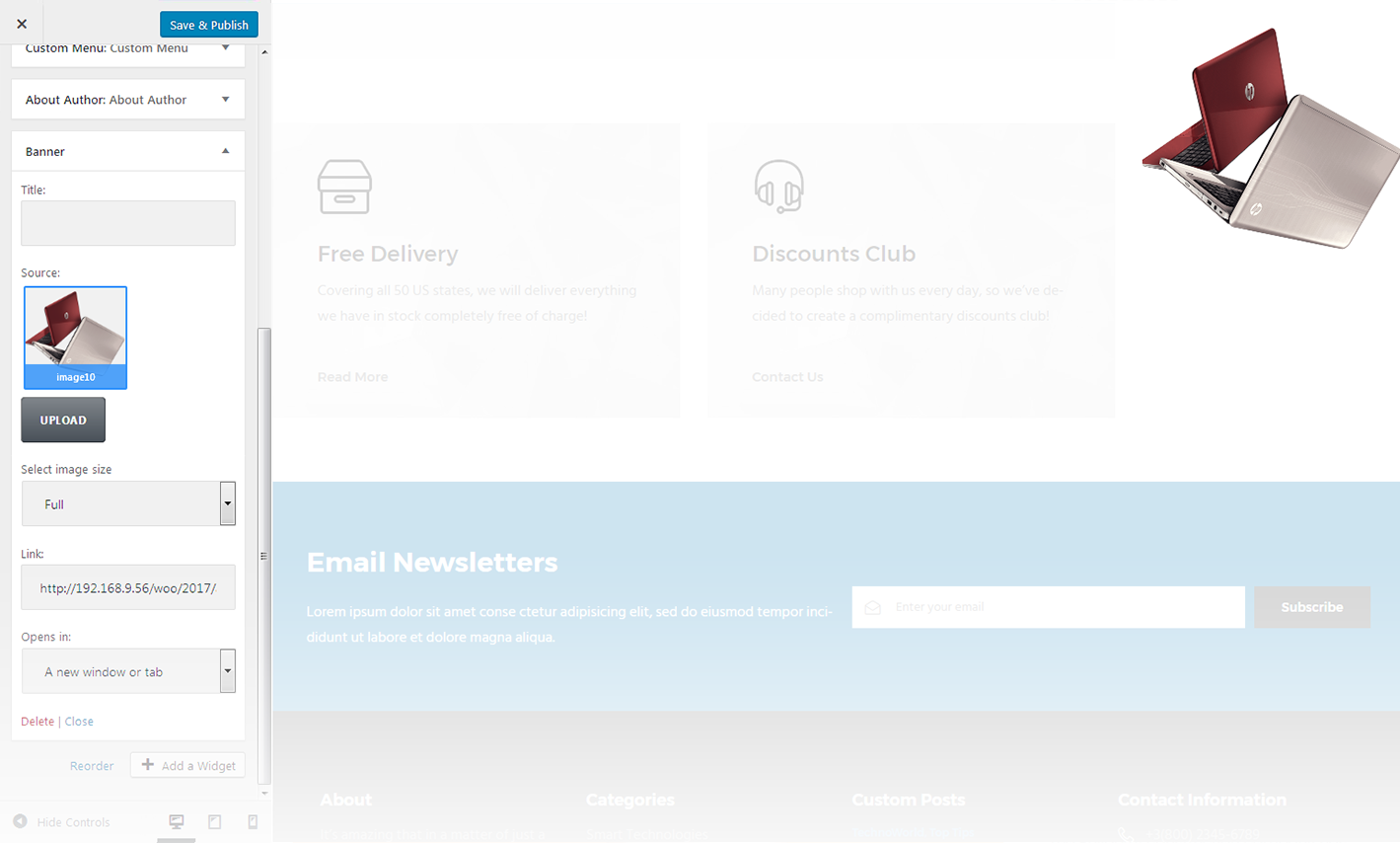 - this option allows you to add a link to a particular banner. Hover on a thumbnail in the customizer and click the button in the middle of it to specify the address;