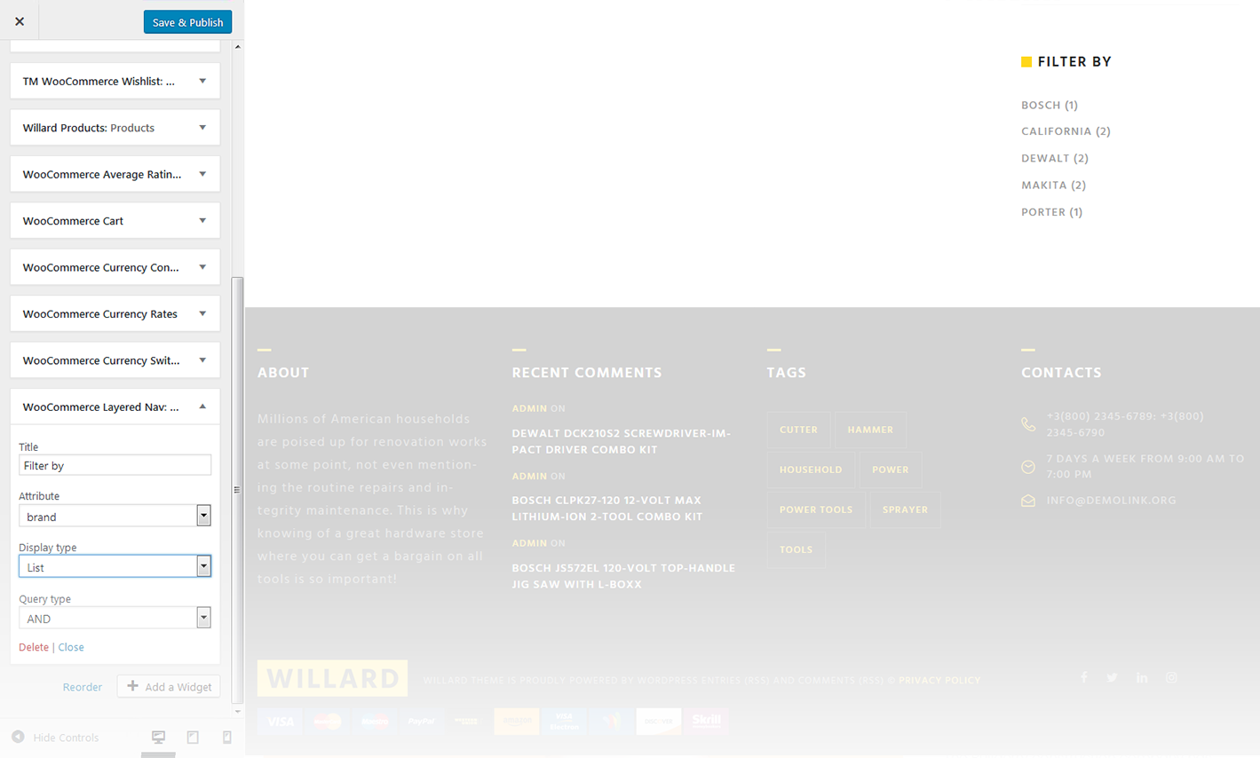 This widget shows a custom attribute that allows to narrow down the list of products when viewing the product categories.